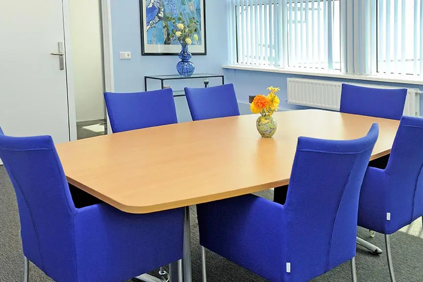 Je kunt bij ons kiezen uit zes vergaderkamers of één grote vergaderzaal van 50 m² met whiteboard. Een groot presentatiescherm of beamer erbij huren kan ook. Alle ruimtes beschikken over snelle wifi, airco en goede koffie.